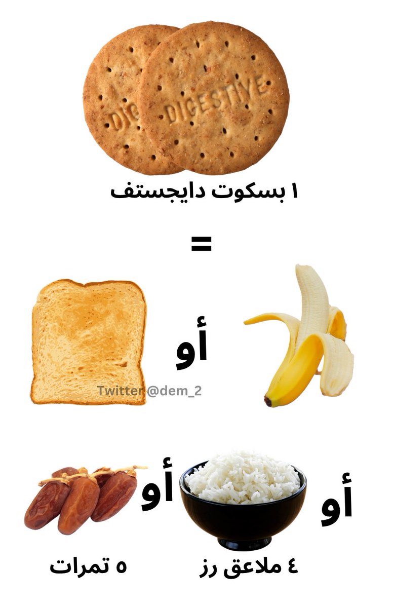 ١ حبة من بسكوت دايجستف = ٤ ملاعق رز