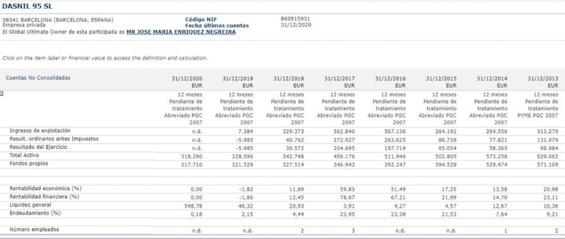 داسنيل هي شركة إنريكيز وإبنه خافيير إنريكيز المسؤول بنفس الشركة، أدلى كلاهما بشهادتهما أمام مكتب المدعي العام برفقة مسؤولون كبار سابقون آخرون في نادي برشلونة بعد أن تبين لمكتب المدعي العام أن الشركة تلقت أموتا من برشلونه.