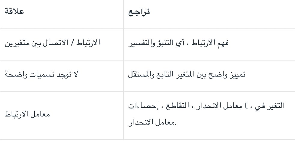 تستخدم تقنية الانحدار لتقييم قوة العلاقة بين متغير (متغيرات) تابع ومستقل. يساعد في التنبؤ بقيمة متغير تابع من متغير مستقل واحد أو أكثر.