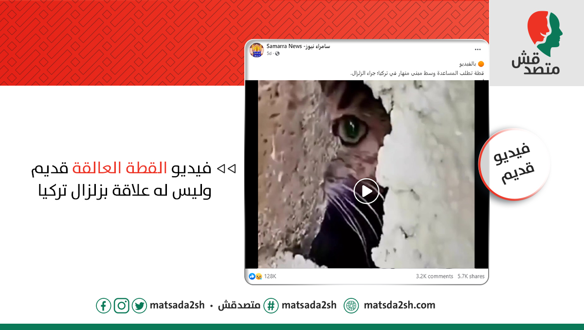 - فيديو منتشر بشكل كبير جدًا لقطة عالقة داخل جدار أسمنتي تطلب المساعدة للخروج، مع تعليق: "قطة تطلب المساعدة وسط مبنى منهار في تركيا؛ جراء الزلزال". ❌❌