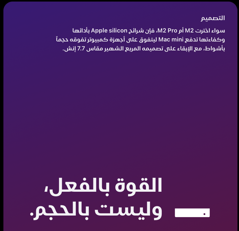 ادخل موقع آبل على منتجهم الجديد Mac mini شوف كيف أن كل محتوى الصفحة يحاول إقناعك بفكرة واحدة، وهي أن