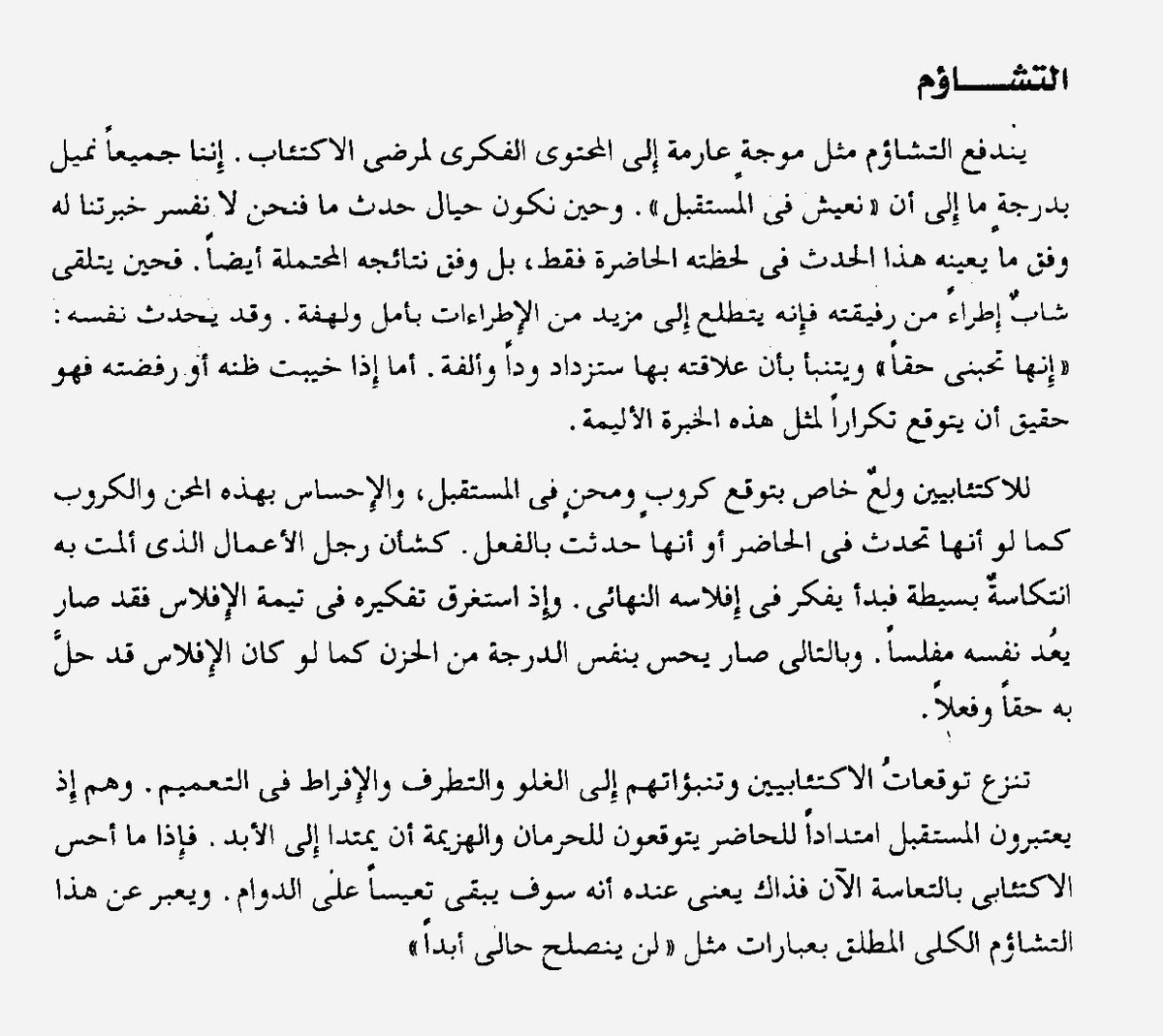 - حديث سلبي عن المستقبل : ( سأكون دائماً فاشل - لن يُحبّني أحد ) .