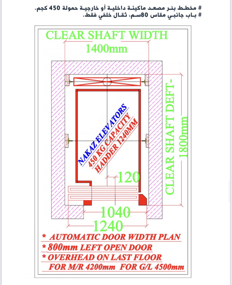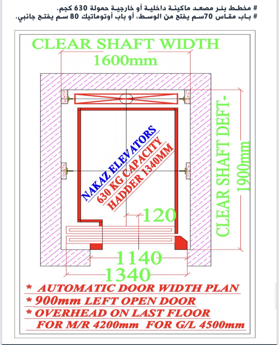 #ثريد سلسلة مرجعية عن مقاسات المصاعد الكهربائية المتعدده المناسبة حسب الحمولة وعدد الأشخاص وأتجاه ومقاس فتحت الباب والثقال ومساحة البئر