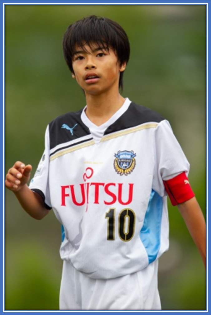 Cuando tenía 16 años y a su puerta llamaron directivos del Kawasaki Frontale de la J1 League, Mitoma prefirió seguir estudiando antes que firmar su primer contrato profesional. Fue admitido en la Universidad de Tsukuba, donde compaginaba los estudios de E. Física con el fútbol.