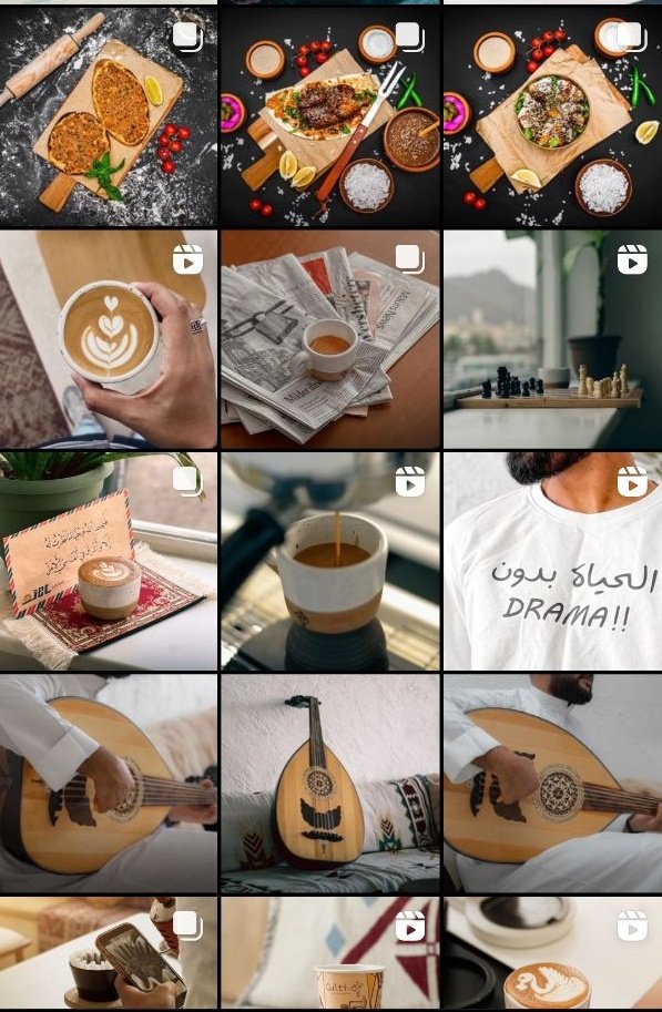 هذا النمط موجود بكثرة وما يعجبني أبدًا لأنه مافيه احترافية ومو مفيد لك كصانع محتوى، ممكن اذا كان الحساب لنشر الأعمال فقط، او انك تكون فنان بهذا النمط بحيث ما يكون في اي تقسيمة فراغ