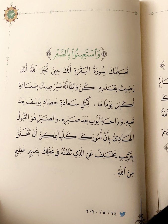 أن أصبر حتى يأتي الله بالفرج و بالشفاء ويأتي بالنور الذي تستقيم به ظلمات حياتي ويأتي بالسعادة التي بحثت عنها طويلا والحلم الذي أنتظرته كثيرا وبكل ماضننت أنه لن يأتي سيأتي حتما حتى يأتي أمره وأنا سأنتظر أمره بلا يأس
