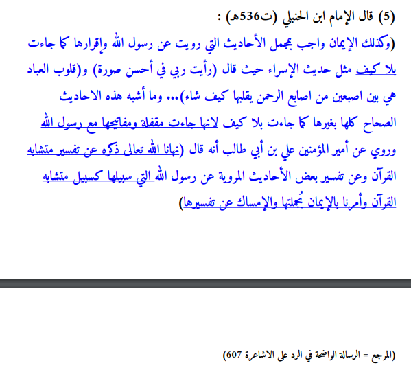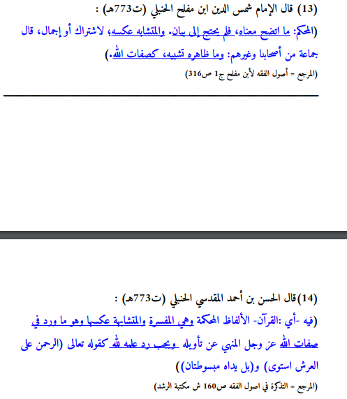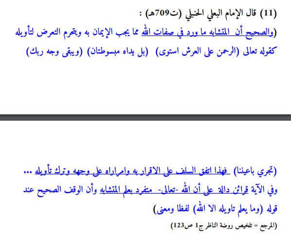 مجموعة تغريدات انقل فيها كلام بعض علماء السادة الحنابلة في بيان عقيدة التفويض (مسلكهم في الصفات المتشابهة في صفات الله عز وجل) والتي تخالف عقيدة السلفية المعاصرة في صفات المولى سبحانه وتعالى