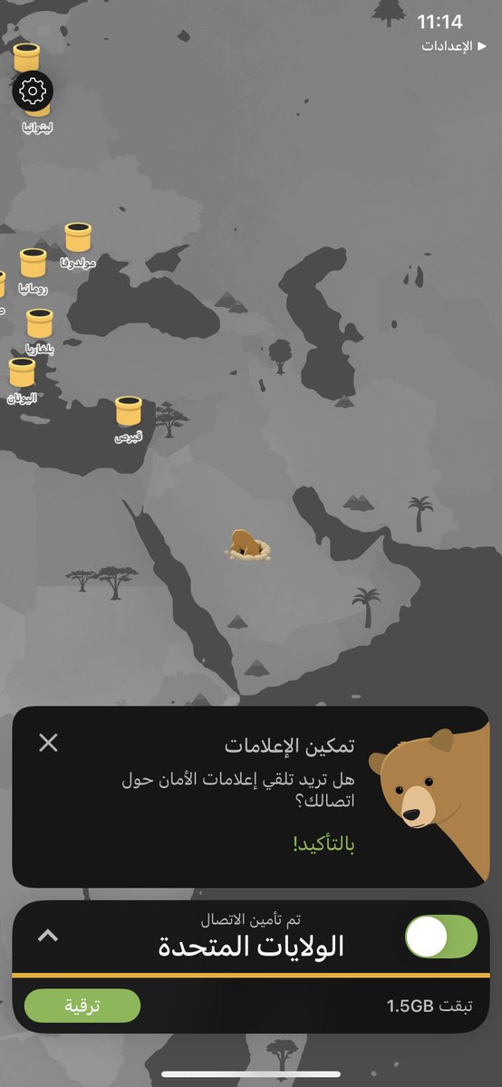 ادخل البحث بالابستور واكتب TunnelBear vpn حمله وسجل فيه وعطه توثيق وبعدين