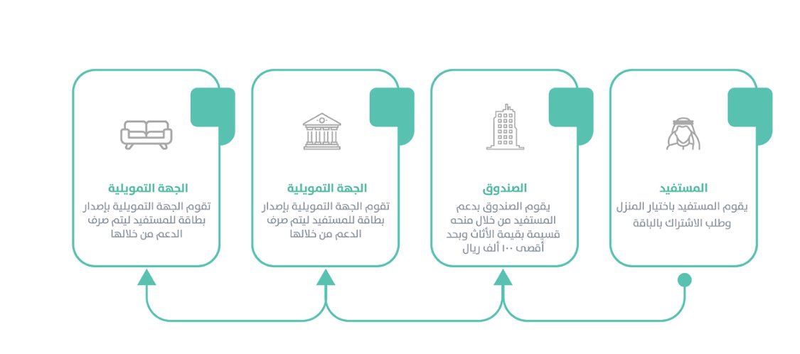 -باقة البناء الذات( يتم صرف مبلغ الدعم من خلال بطاقة،صلاحيتها 36 شهر، لا يتم السحب والاسترجاع النقدي والتحويل،تفعيل بطاقة الشراء عبر الإنترنت من متاجر الأثاث،تفعيل البطاقة بعد توقيع الدفعة الأولى بخمس أيام عمل)