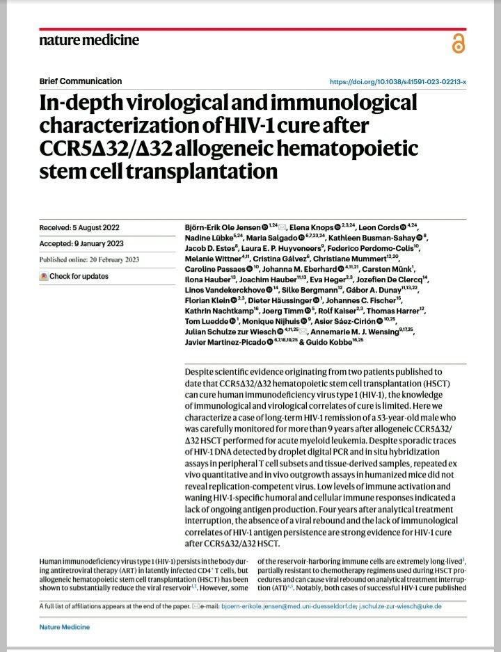 جدير بالذكر بأن #زراعة_الخلايا_الجذعية تمت لهذا المريض بهدف علاجه من #سرطان_الدم وليس علاج الأيدز، ولكن الأطباء تفاجؤا بشفاء المريض من الأيدز بعد إيقاف العلاجات المثبطة للمناعة وإيقاف أدوية الأيدز.