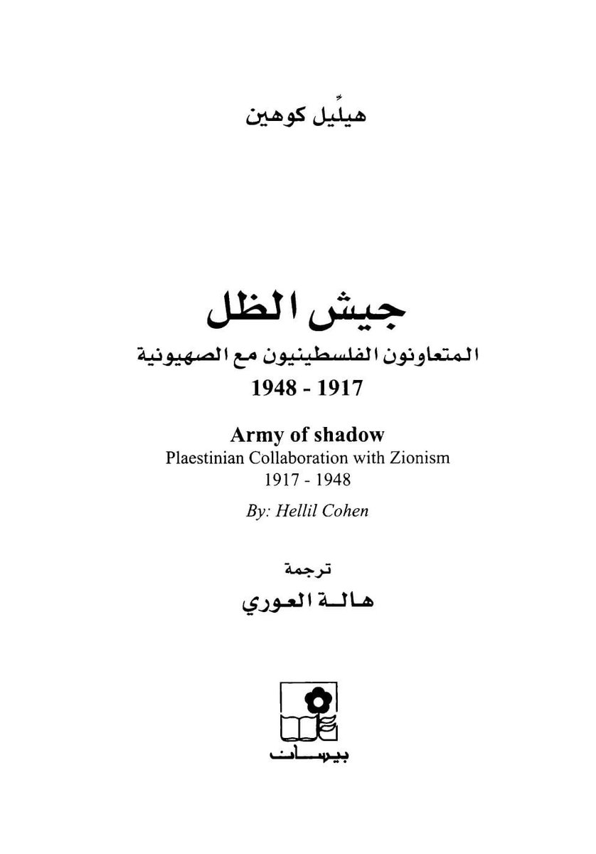 📍ملخص كتاب “جيش الظل " يتحدث عن تعاون الفلسطينيين مع الحركة الصهيونية عام 1917-1948..معظمهم، يضعون المصالح الشخصية والعائلية والقبلية على حساب المصالح الوطنية وان هذا الكاتب لا يستهدف متعاملين نكرات, بل رموزاً معروفة لفئات المجتمع الفلسطيني