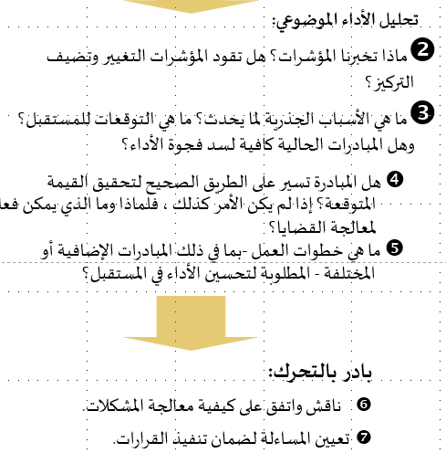 ولنتذكر أهمية:ربط اجتماعات مراجعة التشغيل ببطاقة الأداء، مما يضمن الارتباط بين الاستراتيجية والعمليات