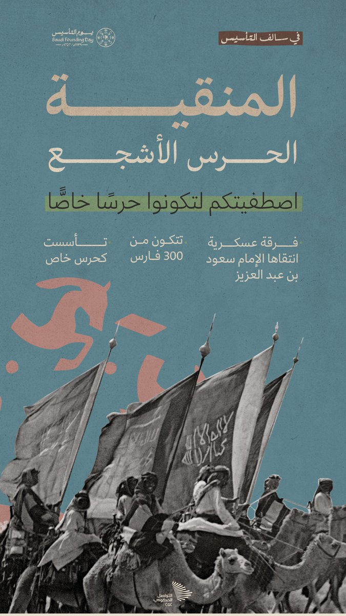 مجهزة بأجود أنواع الأسلحة والخيول، وتم انتقاء الشجعان لها، "المنقيّة" قوة الحراسة الأشجع للإمام سعود بن عبد العزيز. #يوم_التأسيس