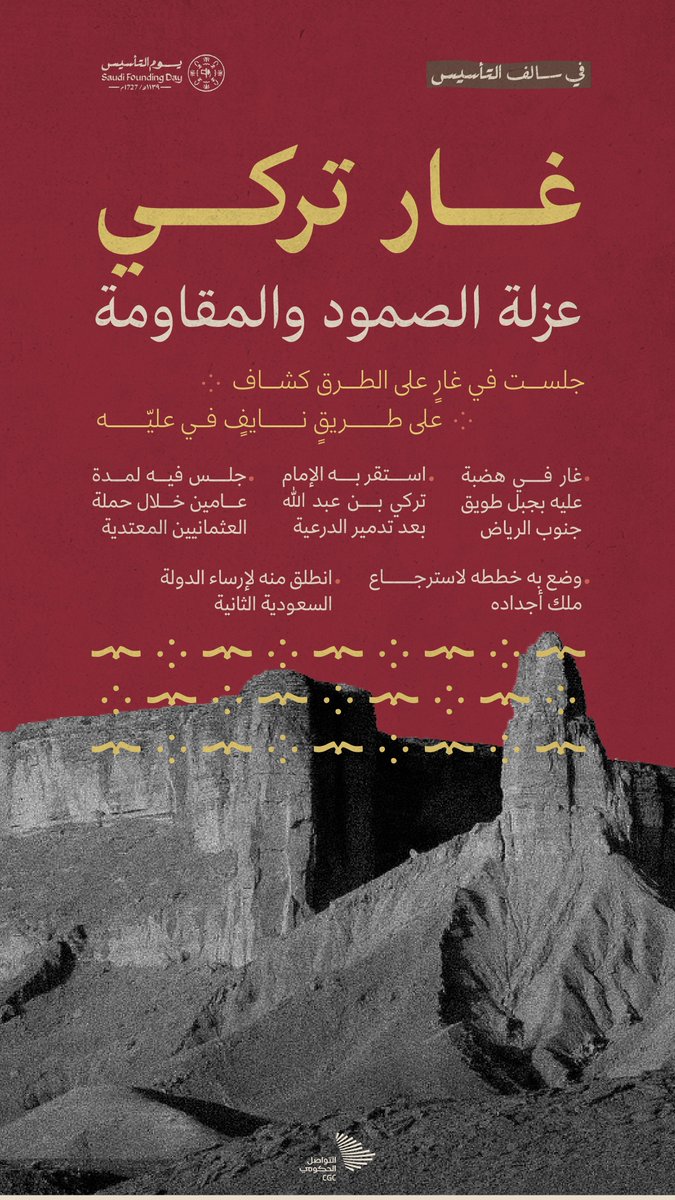 "جلست في غارٍ على الطرق كشاف" غار تركي، عزلته للصمود والمقاومة. #يوم_التأسيس #يوم_بدينا