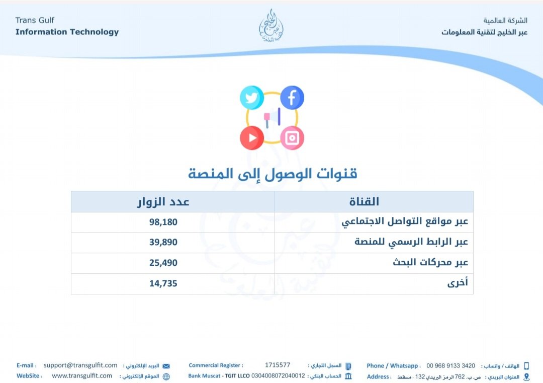 شكرا لكل من زار المنصة واستفاد من أقسامها المختلفة، وشكرا لشركة عبر الخليج لتقنية المعلومات @it4oman