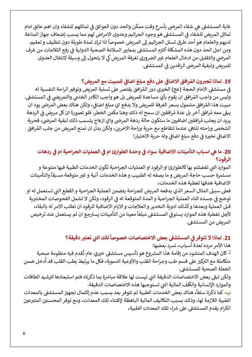 6. من يعترض ويريد أن تكون المستشفى مجانية 100% ممكن أن يجيبني على سؤال: