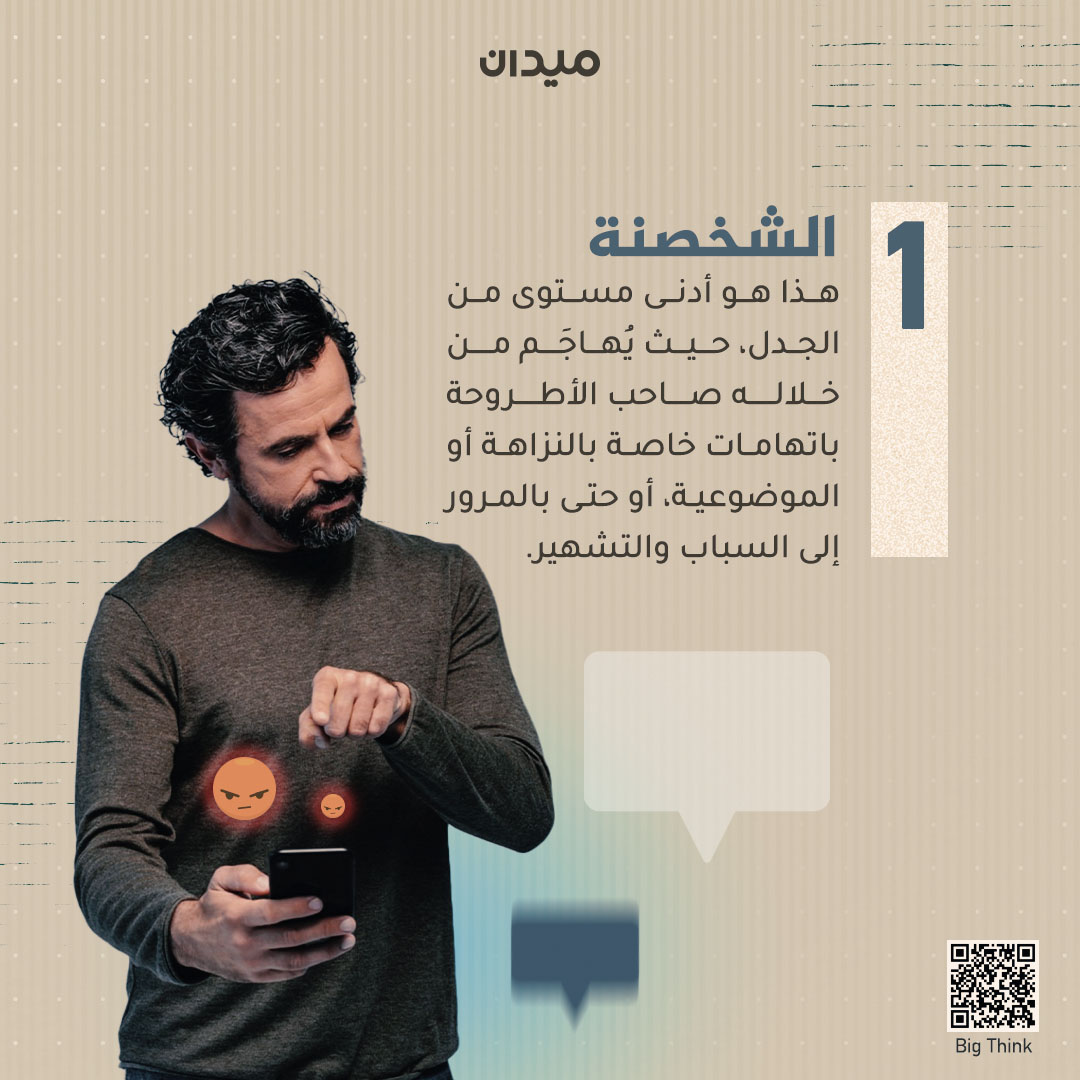 ربما تجد نفسك يوميا منخرطا في نقاشات فكرية وسياسية عبر وسائل التواصل الاجتماعي، وربما أيضا لا تتفاجأ إذا ما انتهت تلك النقاشات إلى جدالات عقيمة بلا فائدة حقيقية، ولكن بالطبع هناك دوما أسباب.. تعرف إلى الأساليب السبعة للاختلاف أثناء النقاشات في هذا الألبوم.