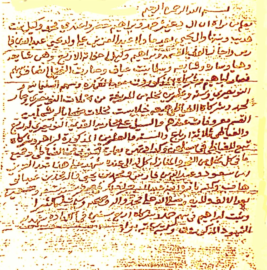 * أم إبراهيم وشقيقاته، هي سلمى بنت الأمير عياف بن مقرن؛ وأظن أن هذه الوثيقة أقدم مصدر تاريخي ذكر الأمير عياف!