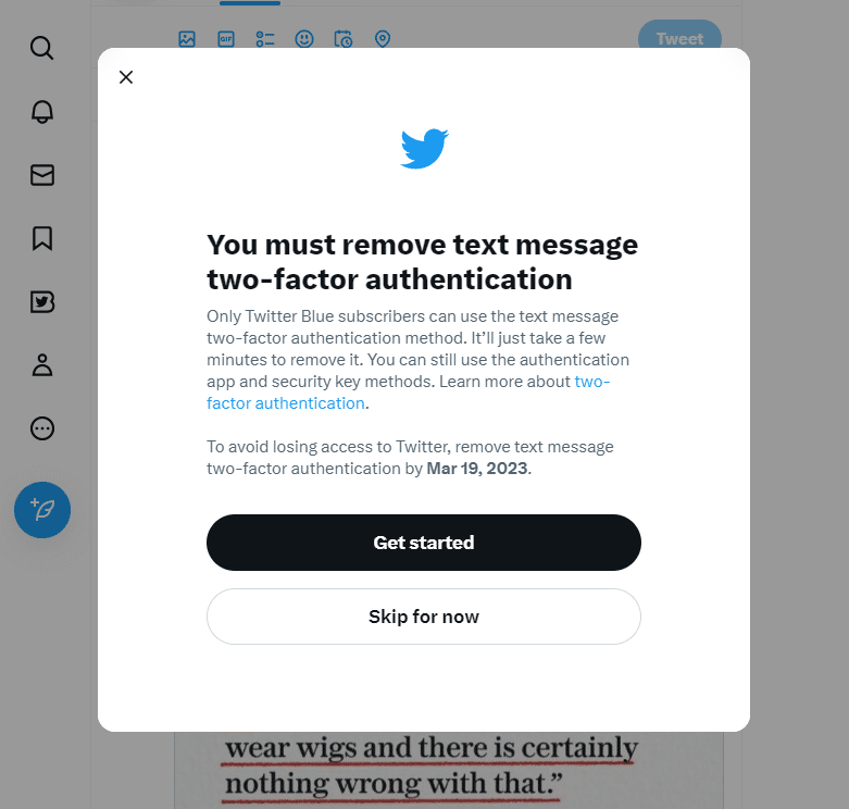 Twitter wamesema usipotoa SMS 2FA mpaka march 20 wao wataizima hiyo huduma automatically, lakini hiyo haiwezi