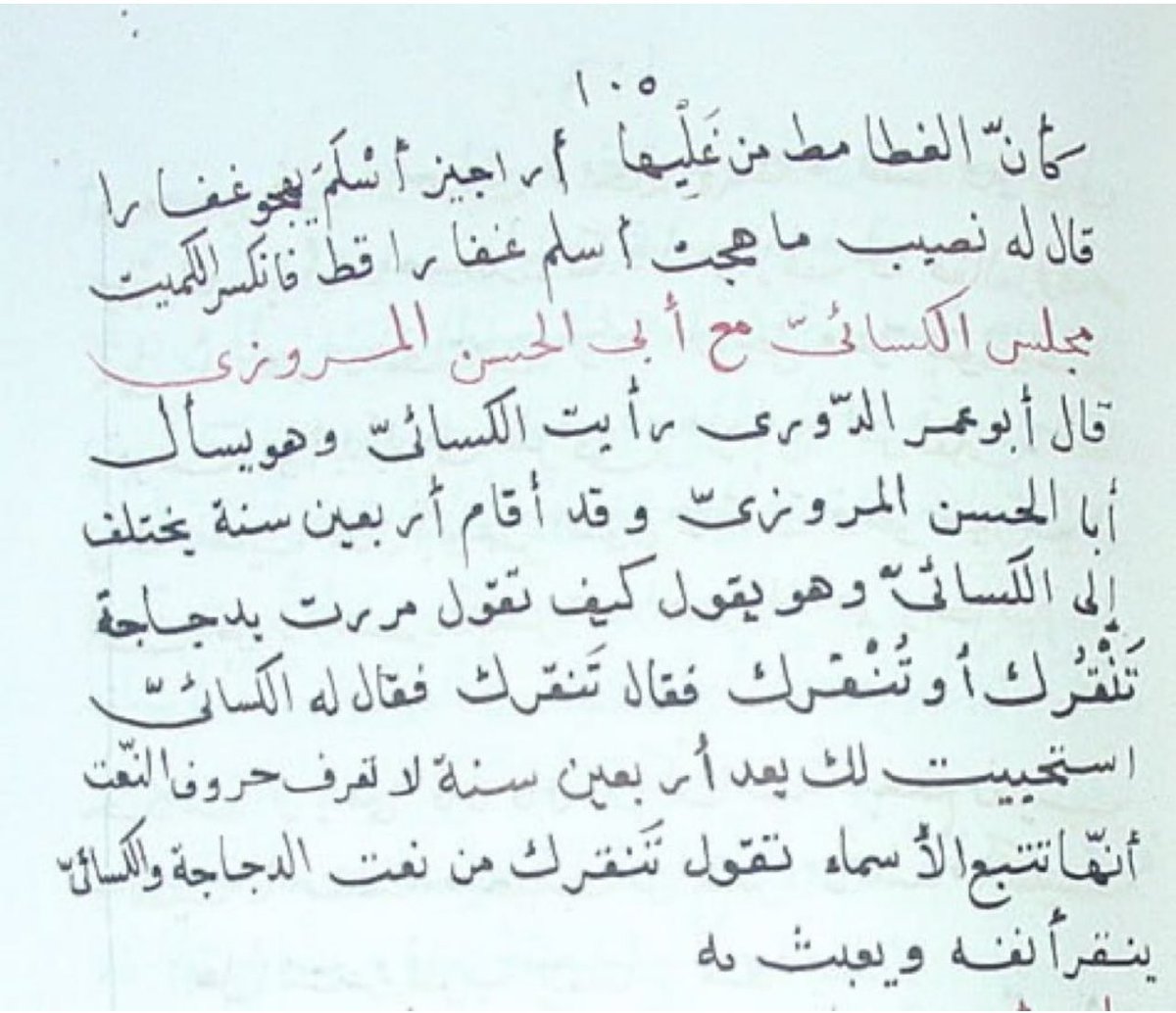 صواب الضبط: تنقرِك، بكسر الراء، هذه إجابة المروزي، ويبدو أن الكسائي نصب له فخا في السؤال فوقع فيه متوهما أن تنقرك نعت للدجاجة وغفل عن أنها فعل، ولذا قرّعه الكسائي وسخر منه.