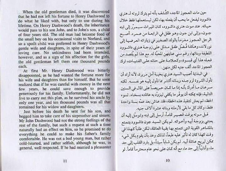 فكرة مرة ممتازة ، صرت اقرأ باللغة العربية ومن ثم ترجمة كل كلمه وجملة في الصفحة المعاكسة