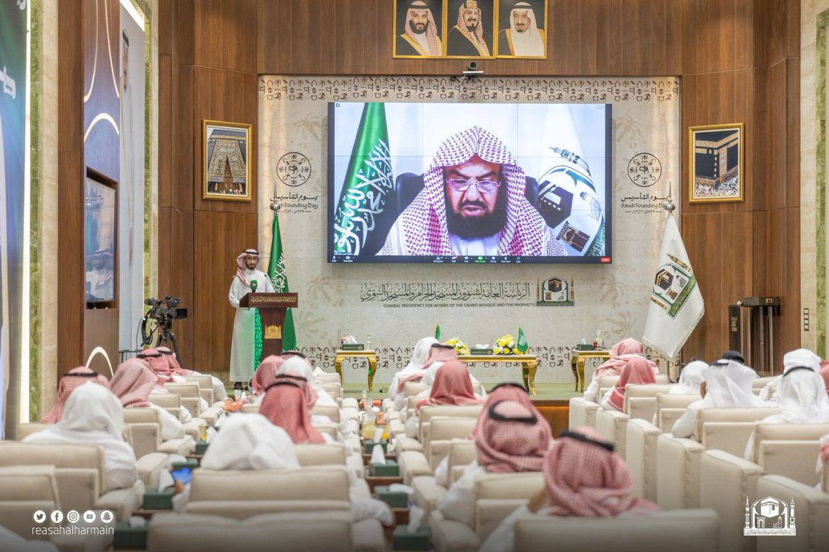 خلال رعايته لملتقى (يوم التأسيس وأثره في خدمة الحرمين الشريفين وقاصديهما)؛ الرئيس العام: إنه يوم توثيق التأريخ والاعتزاز بجذورنا العميقة، لتأسيس هذا الصرح الشامخ الذي يناهز دول العالم تقدماً وحضارة