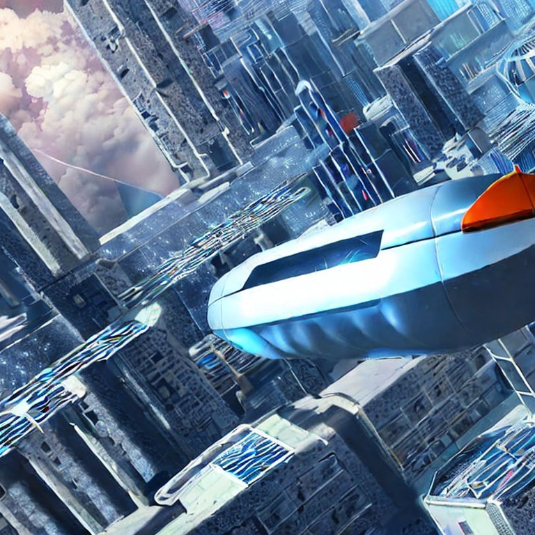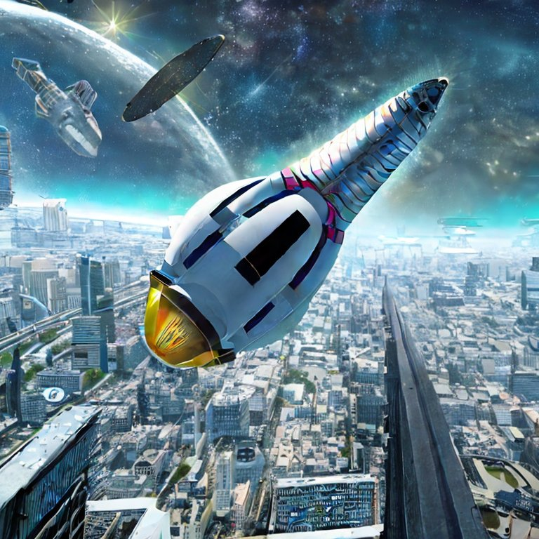 طلبت منه: سيارة فضائية تطير فوق مدينة عصرية مستقبلية