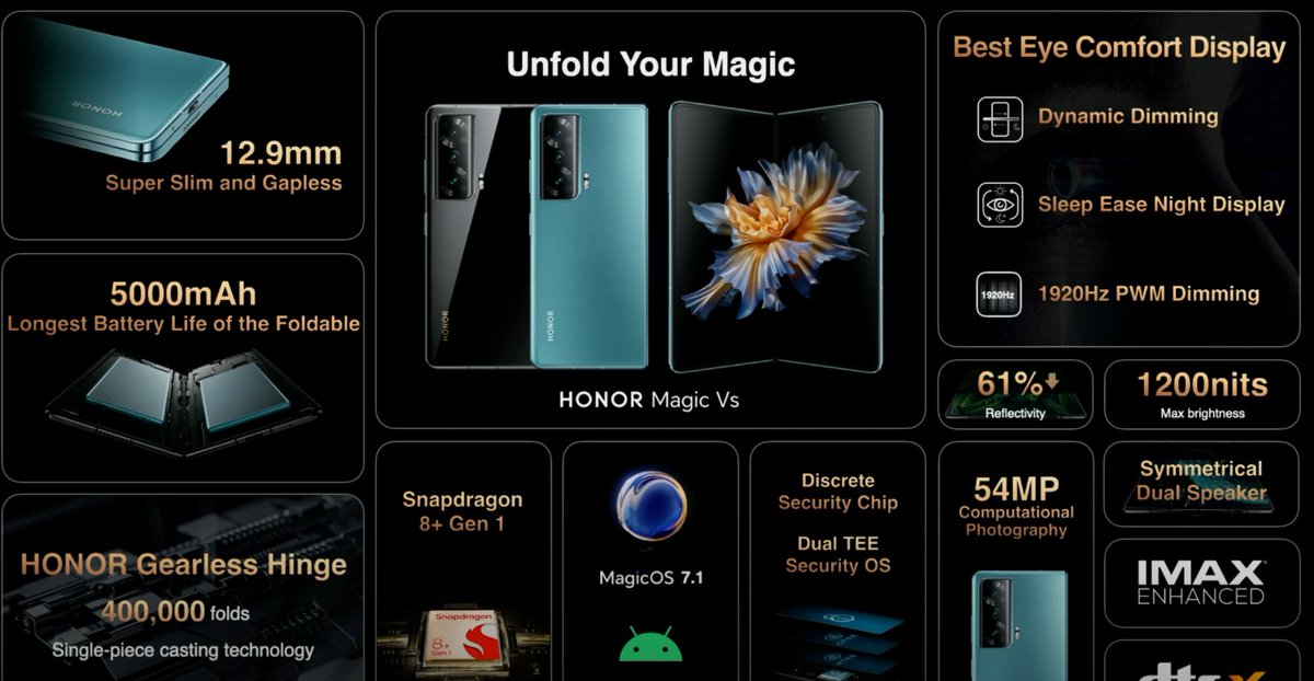 الاعلان عن جوال HONOR Magic Vs بشاشة قابلة للطي بسماكة 12.9mm وبدون فراغ في المنتصف، وبمفصلات جديدة أخف واقوى من السابق