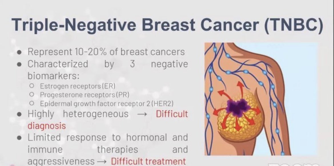 (4) #سرطان_الثدي_السلبي_الثلاثي (#TNBC) هو #سرطان نادر يصيب حوالي 13 من كل 100000 امرأة في #الولايات_المتحدة_الأمريكية كل عام ويعتبر واحد من أكثر أنواع #سرطان_الثدي تحدياً لعلاجه ولكن تمكن الباحثين من احراز تقدما نحو علاجات أكثر فعالية.
