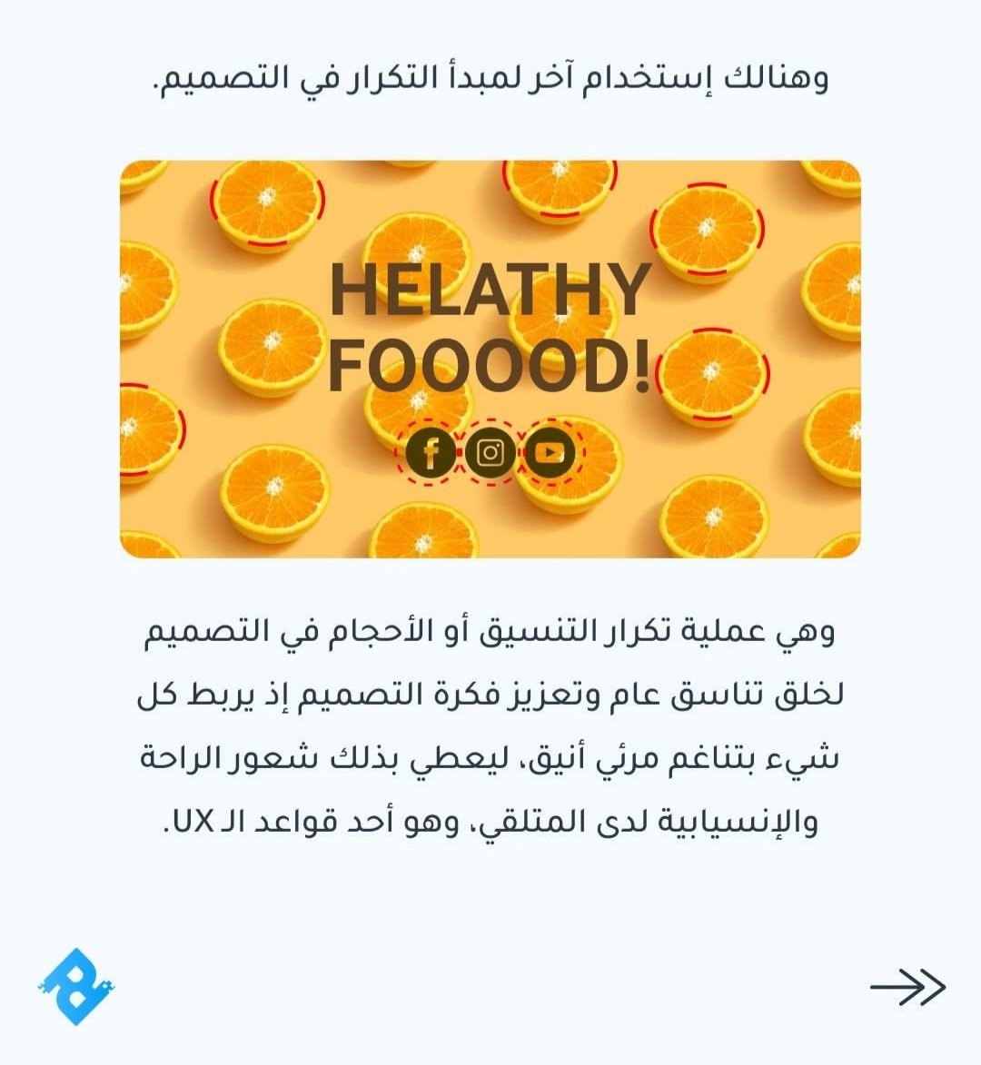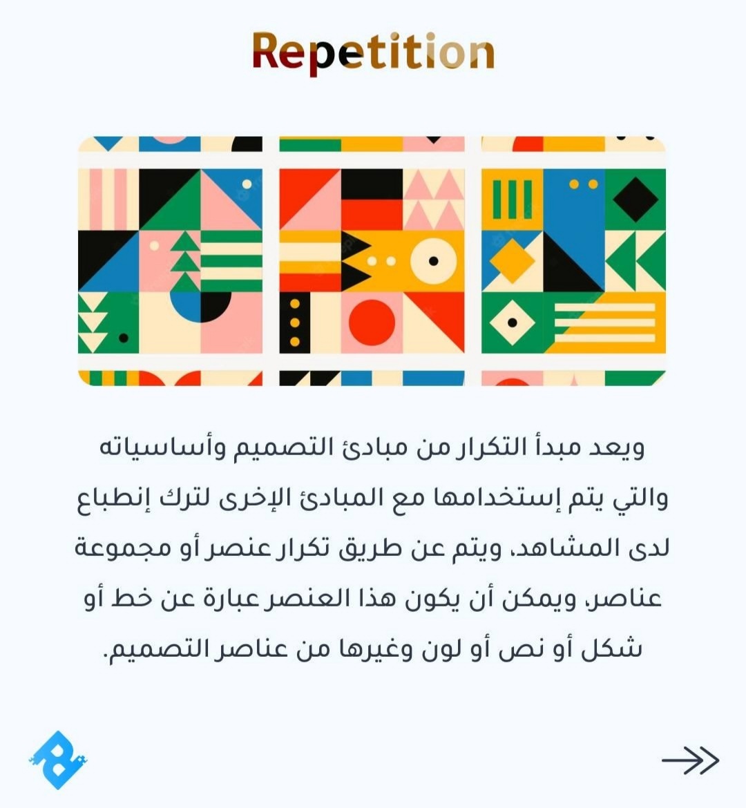 📌من أحد أهم المبادئ في تصميم الجرافيك وأساسياته هو التكرار