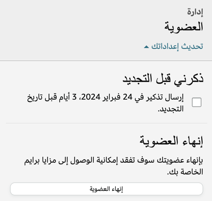ويمدي قبل نهاية الاشتراك بكم يوم يرسل لك امازون تذكير اذا حاب تلغي الاشتراك.