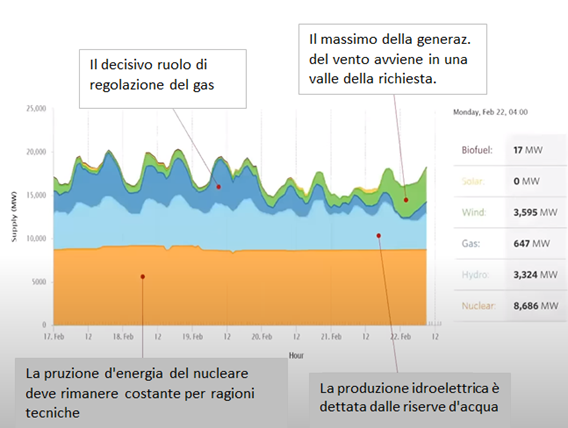 Per rispettare la domanda, si agisce fondamentalmente sull’impianto a gas, visto che il nucleare per ragioni tecniche è difficile da regolare.