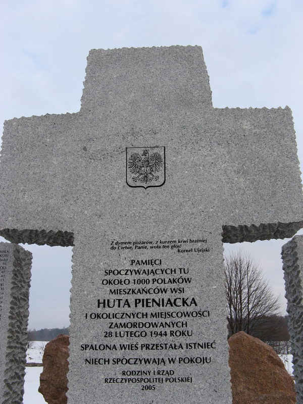 że w zbrodni ludobójstwa dokonanej na ludności polskiej w Hucie Pieniackiej, oprócz ukraińskich żołnierzy 14 SS Schutzen Galizien, brali również udział ukraińscy szowiniści z OUN-UPA z okolicznych wiosek – Hołubica, Jasionów, Łukawiec, Pieniaki i Żarków”10/14