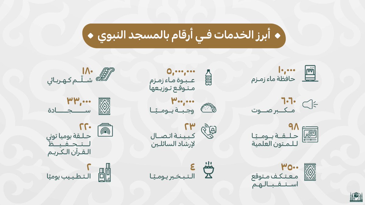 الرئيس العام: رفعت الرئاسة كادرها البشري إلى قرابة ١٢ ألف موظف وعامل من المؤهلين، وأتاحت ٨ آلاف فرصة تطوعية في ١٠ مجالات وتحقيق أكثر من ٢٠٠ آلف ساعة تطوعية خلال شهر #رمضان المبارك، ليكون التطوع في الحرمين الشريفين من أكثر البيئات التطوعية المنظمة في العالم ولله الحمد.