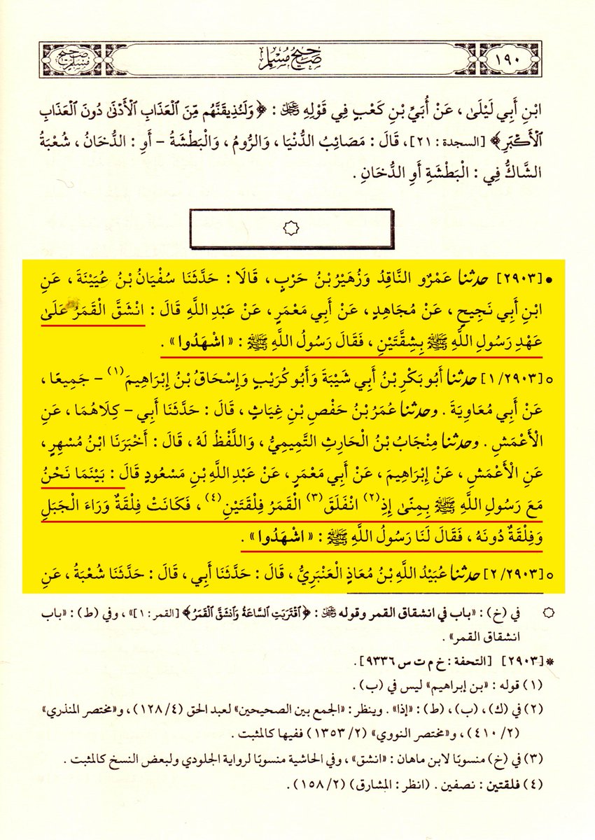 وقد روى مسلم في صحيحه أيضاً معجزة انشقاق القمر.