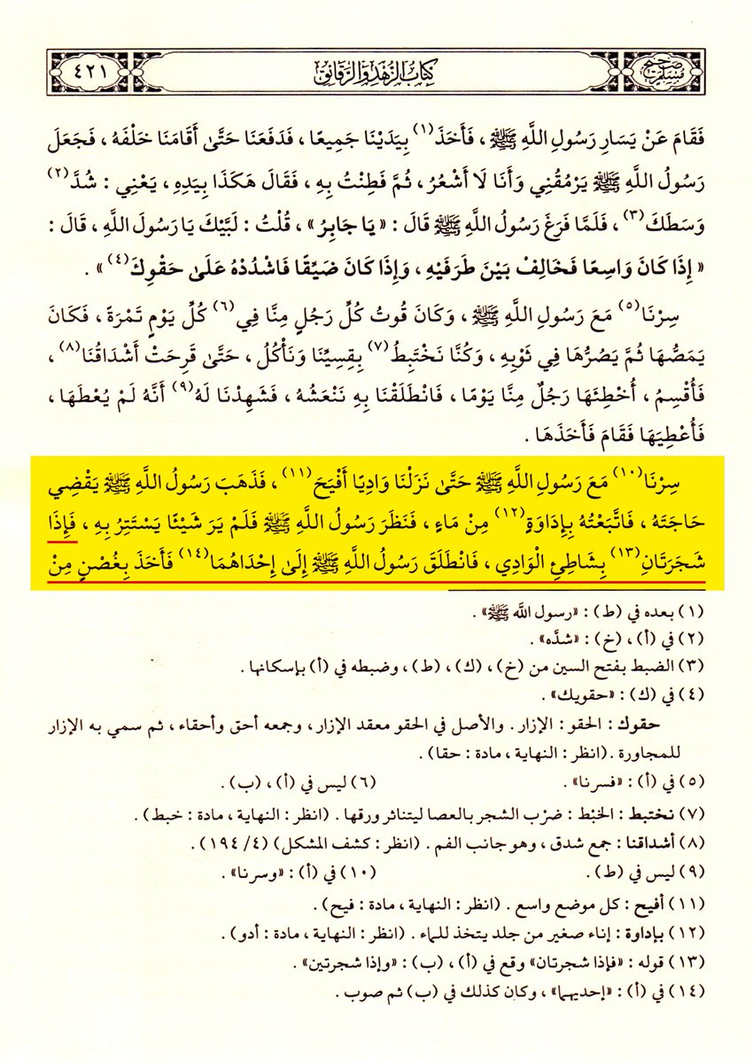 ١١- روى مسلم في صحيحه رواية تفيد انقياد شجرتين لرسول الله صلى الله عليه وآله، حيث أخذ بغصنٍ من أغصان كل شجرة وقال لها: "انقادي عَلَيَّ بإذن الله"، فانقادت الشجرتان معه كالبعير المخشوش وائتمرتا بأمره.
