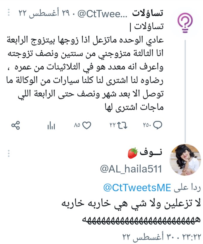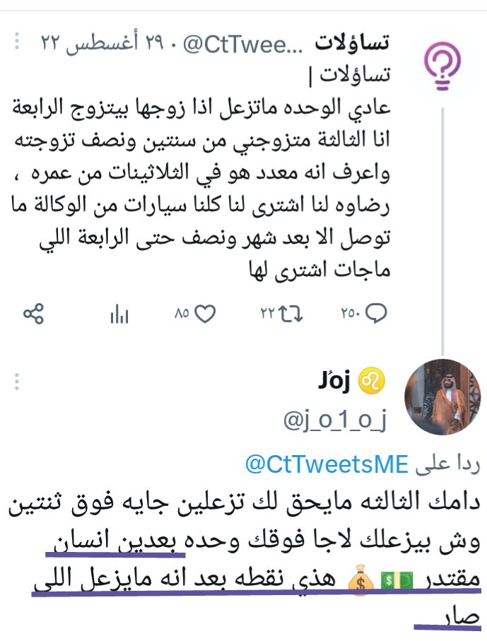 عزتي للسيمبز والبلوبيل اللي تبنّو قضية كراهية التعدد مراعاة لمشاعر المرأة أكثر من المرأة نفسها.. والمرأة بنفسها باعت القضية مقابل سياراة وكالة بقراطيسها