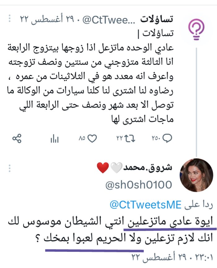 رغم قناعتي ان هذا النوع من التساؤلات "فخ" قام بصناعته ذكر بهدف كشف زيف مزاعم وأكاذيب مشاعر النساء حول "التعدد"، اكثر من كونه شكوى واقعية من (زوجة معدد)