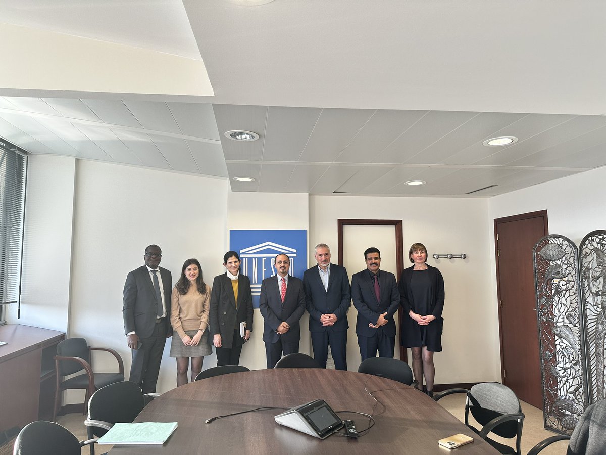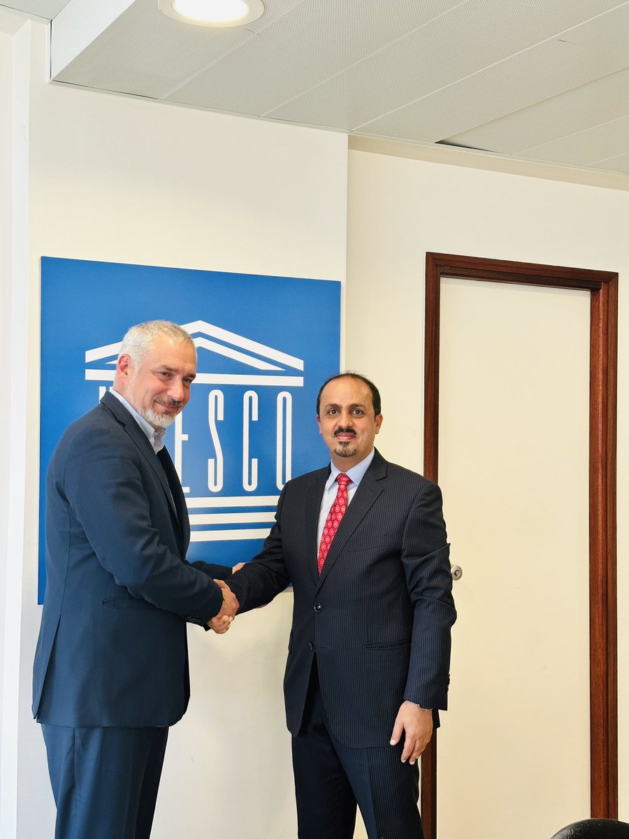 6-ناقشت مع المدير العام المساعد لليونيسكو الترتيبات الجارية لاقامة الاوركسترا التراثية اليمنية في مقر المنظمة بالعاصمة الفرنسية باريس هذا العام والتي ستنظمها وزارة الاعلام والثقافة والسياحة ومؤسسة حضرموت للثقافة وبرعاية فخامة الرئيس الدكتور رشاد العليمي رئيس مجلس القيادة الرئاسي
