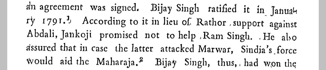 regular Maratha interference in their state, both him and Madho singh of Jaipur didnt help Abdali. Both Madho Singh and Bijay Singh earlier signed agreement that they both will follow same policy in Maratha vs Abdali war. If Marathas earlier agreed to such demand of