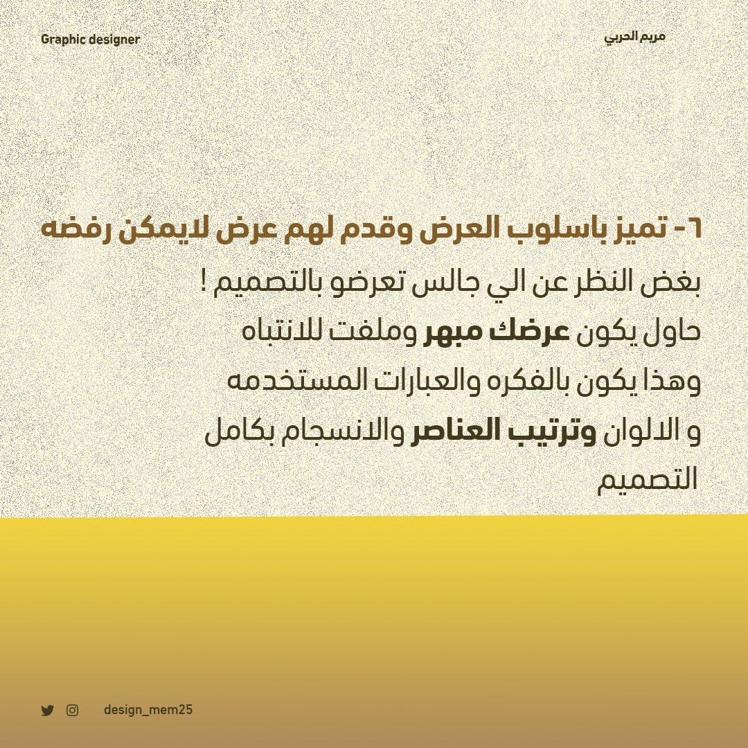 بغض النظر عن الي جالس تعرضو بالتصميم ! حاول يكون عرضك مبهر وملفت للانتباه وهذا يكون بالفكره والعبارات المستخدمه و الالوان وترتيب العناصر والانسجام بكامل التصميم