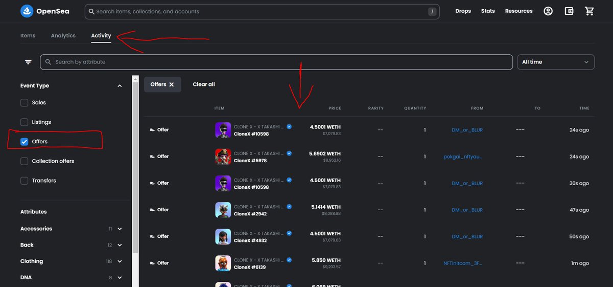راح تظهر لنا قائمة تتحدث بشكل سريع جدا لعمليات offers يرسلوها بوتات وناس تستهدف أفضل الـ Traits الموجودة ضمن الكولكشن