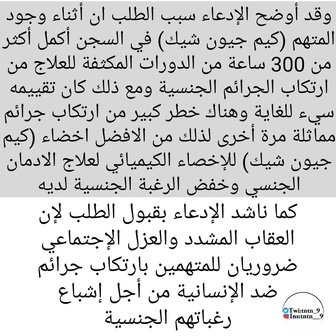 ثريد: الإدعاء العام الكوري يطالب بعقوبة "الإخصاء الكيميائي" على اسوأ مغتصب متسلسل كيم جيون شيك!!💉🇰🇷
