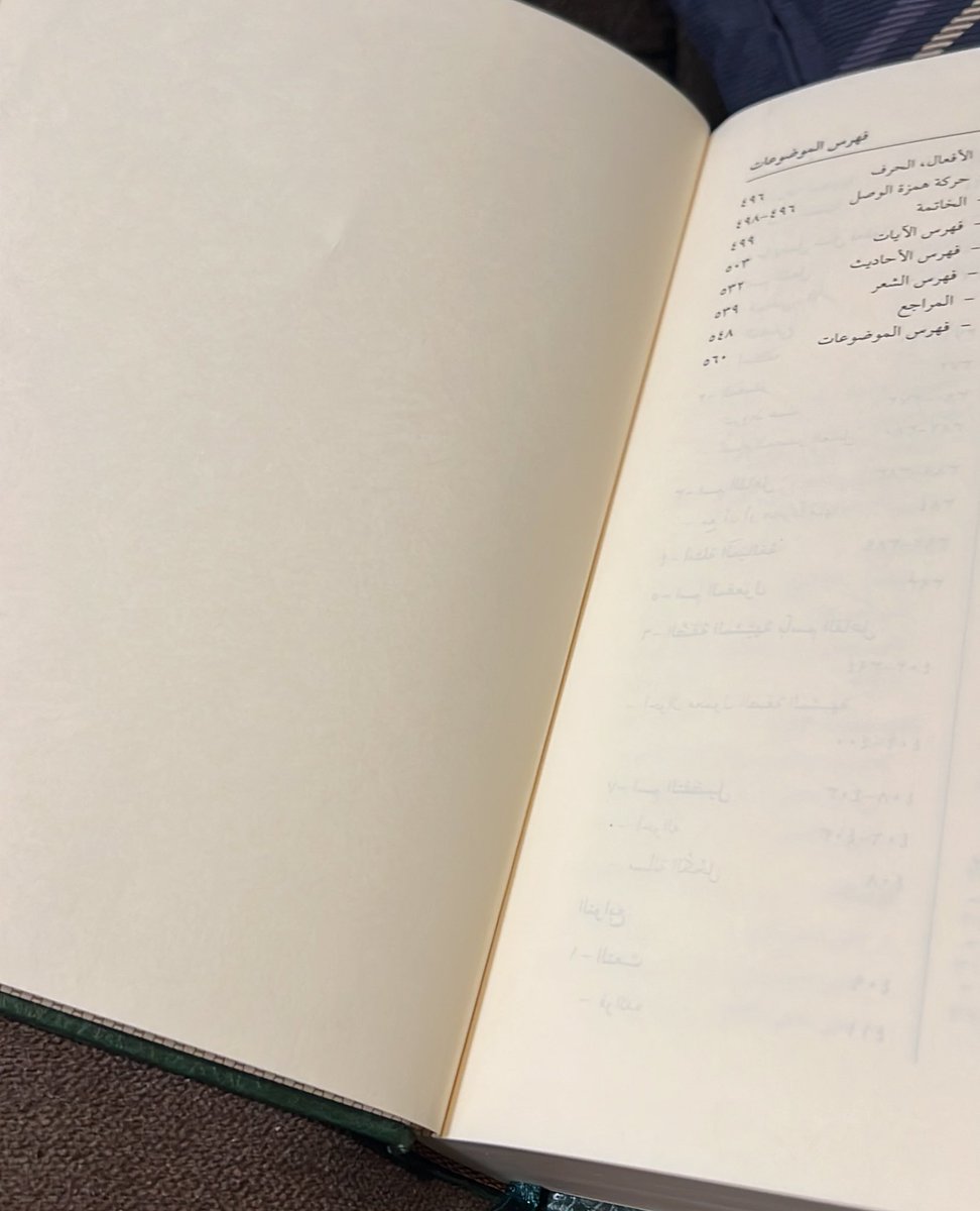 ٢- ثمّ ورقتان في الكتاب هي من «الأوراق المقدّسة» لدي، ولها مكانة كبيرة في «مشروع القراءة» وهي الصفحتان الأولى والأخيرة بعد غلاف الكتاب، وهي عادة تكون صفحات بيضاء في وجهيها الداخليين خاصة.