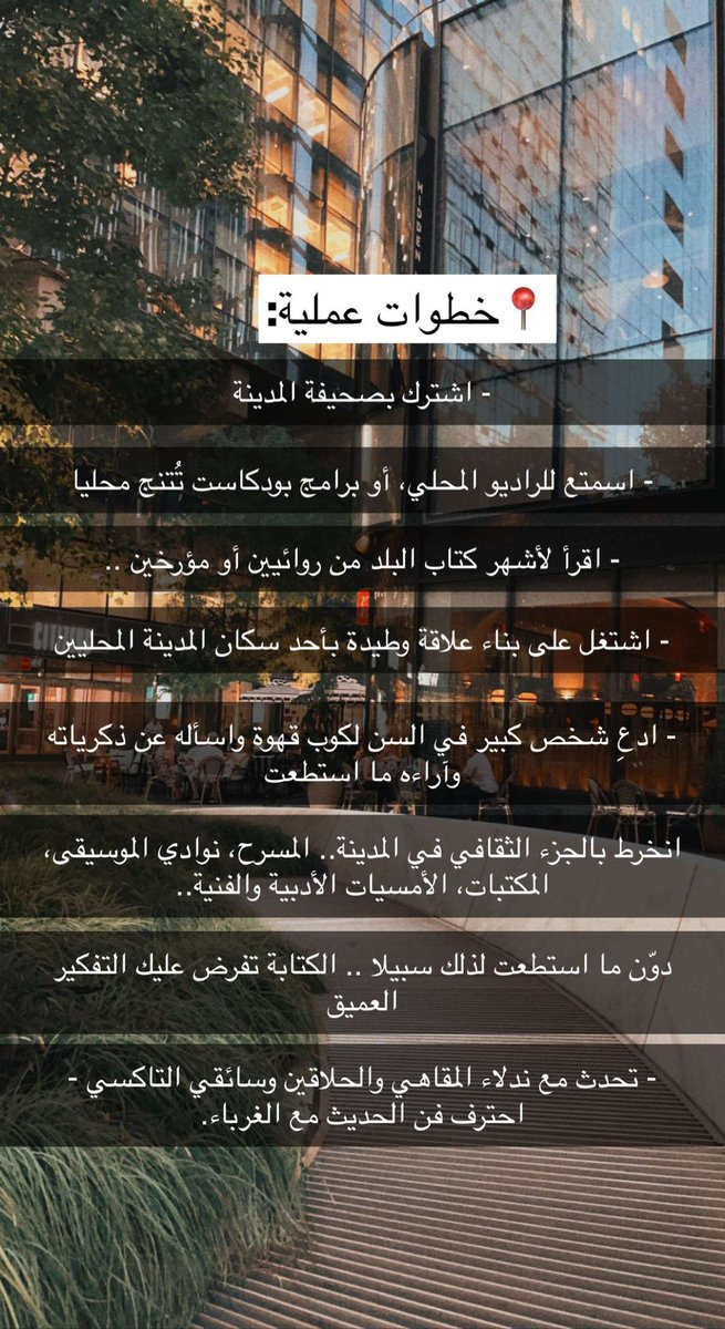 واحد من الزملاء في الابتعاث كان يفضفض ويشتكي عن حالته في تجربة الابتعاث وانه الحياة صارت مملة، وكثرت مشاكله، وكنت انصحه بحكم انه كنت اواجهه ولا زلت في بعض الاحيان نفس الشي! المهم، الرجال اشتغل على هذي النصائح وفترة و رجع يشكرني! #الزبدة بحط تحت هذي التغريدة اغلب النصائح المهمه: