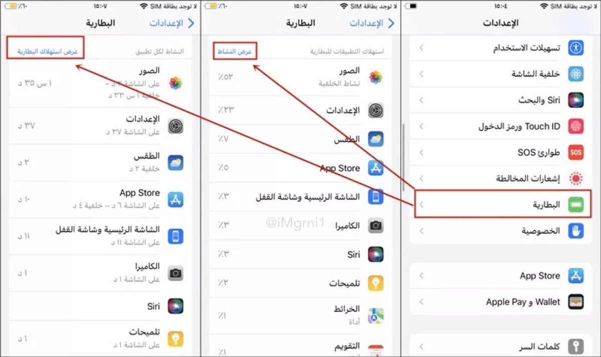• إدارة التطبيقات التي تستنزف البطارية .. يعلمك الايفون بالتطبيقات التي تستهلك القدر الأكبر من البطارية، وذلك حتى لا تكون هناك تطبيقات تخلي بطارية الايفون تنفذ بسرعة دون علمك