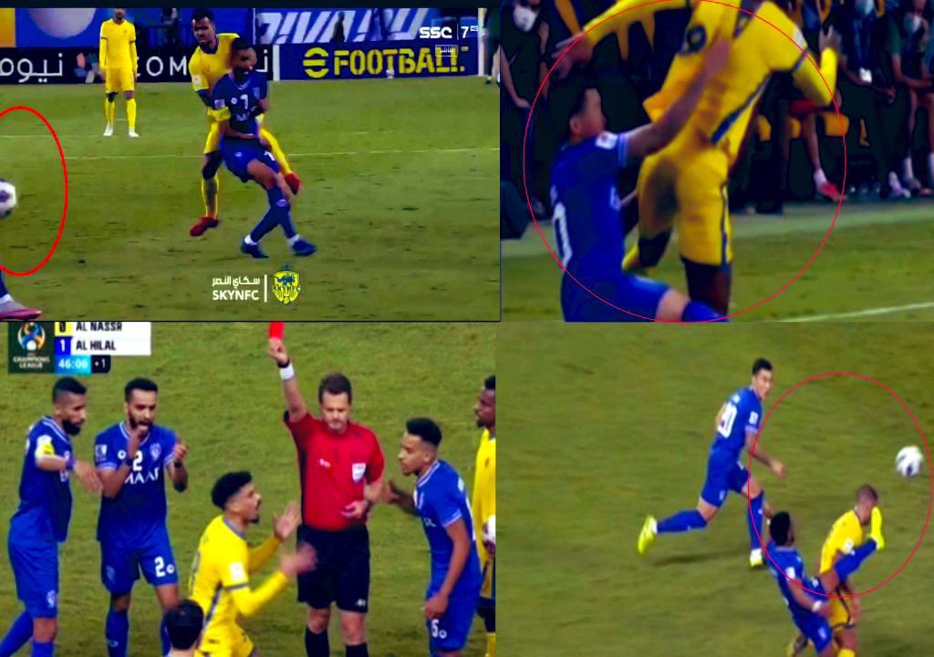 لم يطرد مدافع الهلال الكوري او يمنحة كرت اصفر ضرب من الخلف…