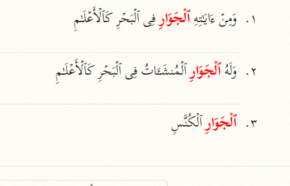 لاحظ في الاية الاولى انه اوضح لك ماذا يقصد بالجوار كالاعلام في الاية التي تليها: