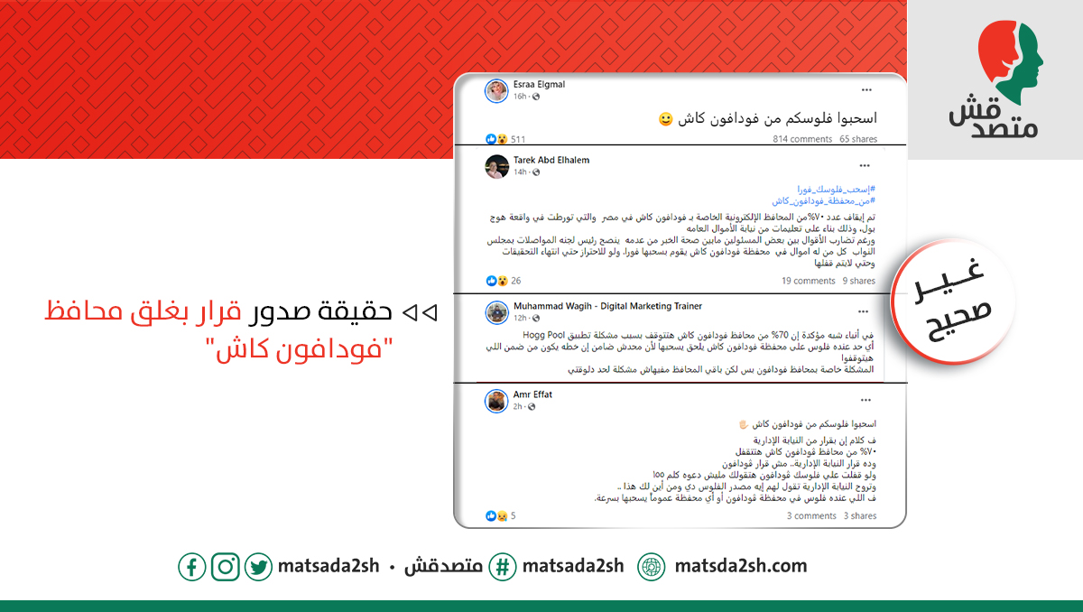 - الكلام ده غير صحيح. عدد محدود فقط من محافظ فودافون كاش أُغلق بالفعل، وده لارتباطه بالتحقيق في قضية نصب. ✅✅ @VodafoneEgypt