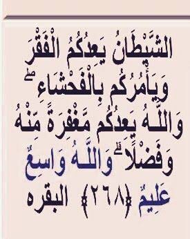 (الشَّيْطَانُ يَعِدُكُمُ الْفَقْرَ وَيَأْمُرُكُم بِالْفَحْشَاءِ ۖ وَاللَّهُ يَعِدُكُم مَّغْفِرَةً مِّنْهُ وَفَضْلًا ۗ وَاللَّهُ وَاسِعٌ عَلِيمٌ (268)البقرة